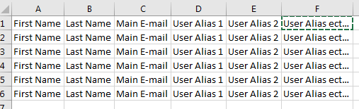 The file can contain a first name, last name, primary STMP address and aliases for all users.